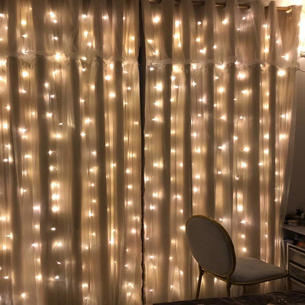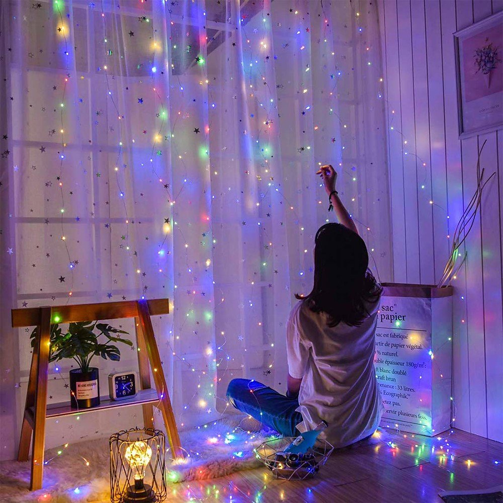 3x3m 300 LED Copper Wire Icicle Curtain Lights USB With Remote Fairy Lights String Garland For Wedding Party Curtain Decor