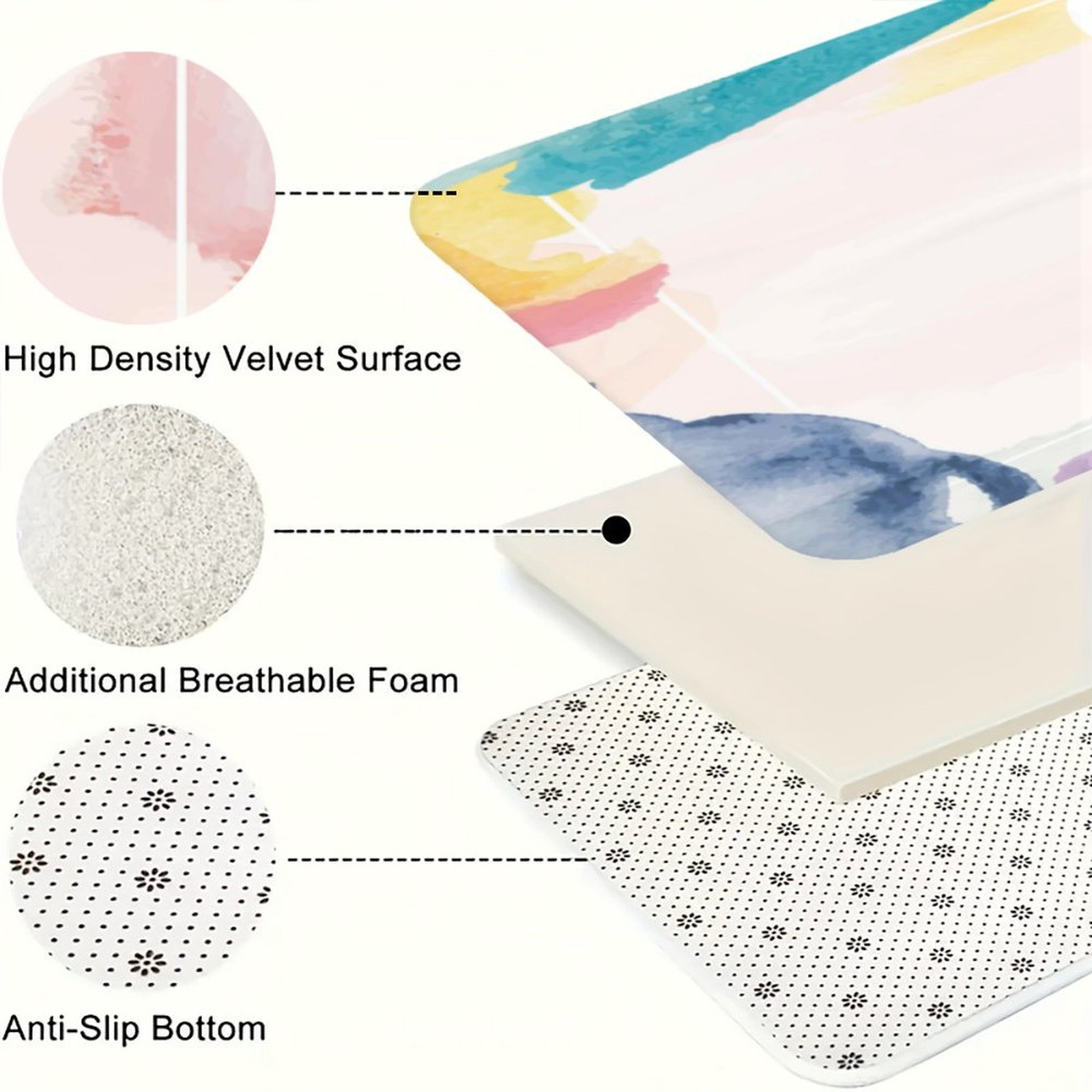 - Made from a high-density velvet surface that feels soft and delicate, a breathable foam layer that adds cushioning and support, and an anti-slip bottom that enhances stability and safety during use.